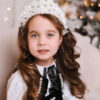 Accesoriu de cap cu fundă satin reglabilă pe cap, realizată din perle, completează perfect un look tradițional plin de rafinament.