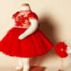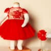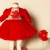 Compleul conține 4 piese: rochiță, bentiță cu pampon din tull, bolero și fundiță detașabilă.