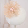 Bentiță floare din multe straturi pufoase de tull, cu suport de dantelă și perluțe accent în mijlocul florii de tull.