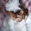 Bentiță floare din multe straturi pufoase de tull, cu suport de dantelă și perluțe accent în mijlocul florii de tull.