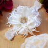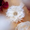 Bentiță floare pe fond de dantelă elastică cu broșă accent central.