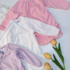Croi petrecut în față cu capse între picioare și lateral pentru a fi îmbrăcat cât mai repede și ușor de către bebeluși.