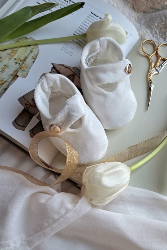 Acești botoșei pentru bebeluși din catifea moale sunt perfecți pentru botezul micuțului tău sau doar pentru purtarea zilnică.