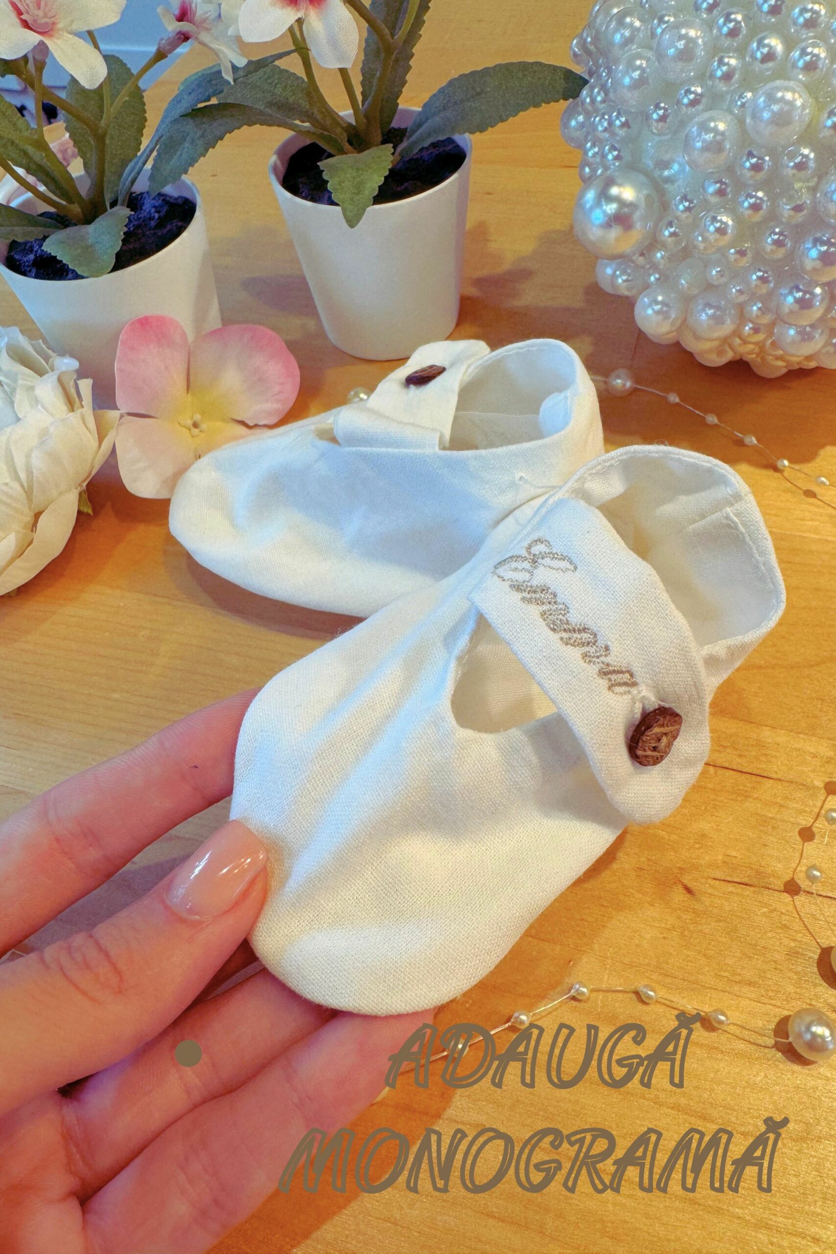 Botoșei pentru botez croșetați manual cu floare