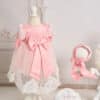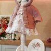 Capa are ca detalii o fundă de satin și doi nasturi croșetați manual care creează mânecuțe și fac utilizarea și îmbrăcarea micilor prințese foarte facilă.