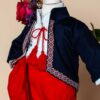 Linia clasică a costumului clasic de băieței și elementele tradiționale construiesc un tablou coloristic plăcut. Culorile puternice și materialele moi fac din acest costumaș o piesă unică, de păstrat peste generații odată cu trecerea timpului. Materialele sunt fine, ușoare și moi, oferind o senzație plăcută la atingere.