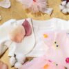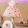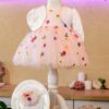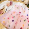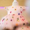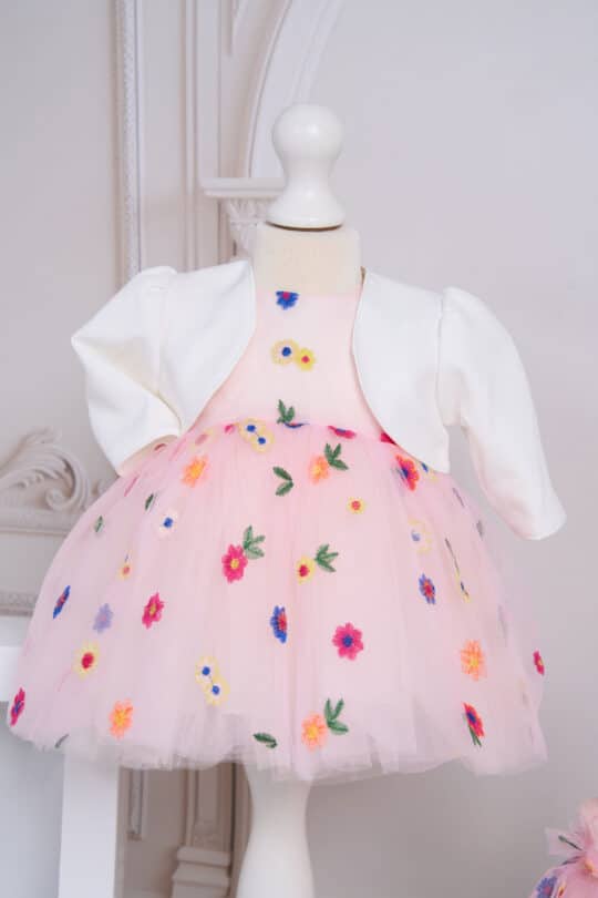 Rochiță manufacturată din tull cu broderie floricele colorate.
