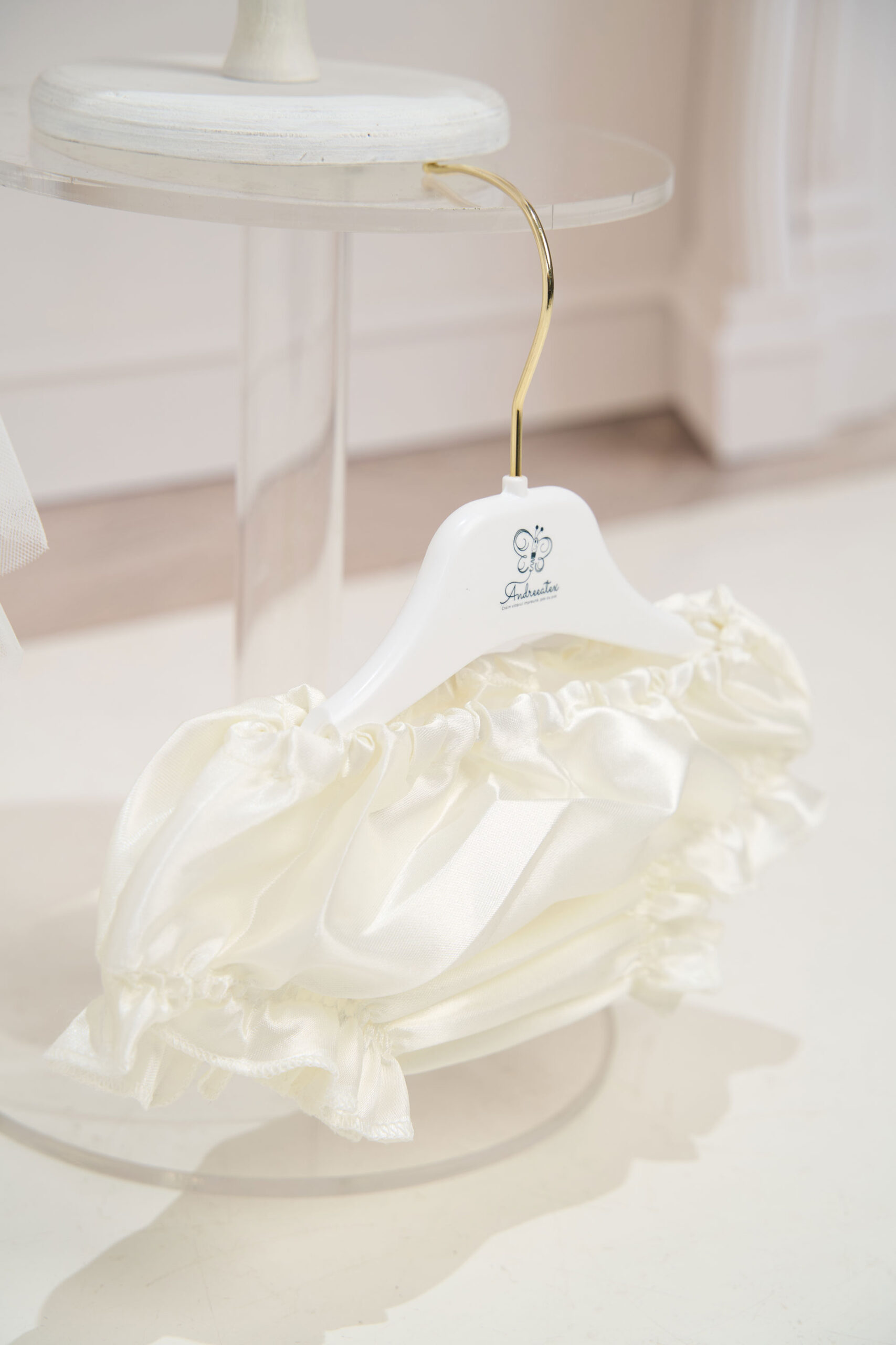 Este o rochiță manufacturată din tafta și multe straturi crețe de tull.