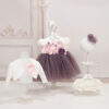 Este o rochiță manufacturată din tafta și multe straturi crețe de tull.