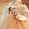 Este o rochiță manufacturată din tafta și multe straturi crețe de tull.