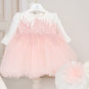 Compleul conține 4 piese: rochiță, bolero, turban, chiloței.