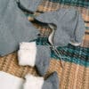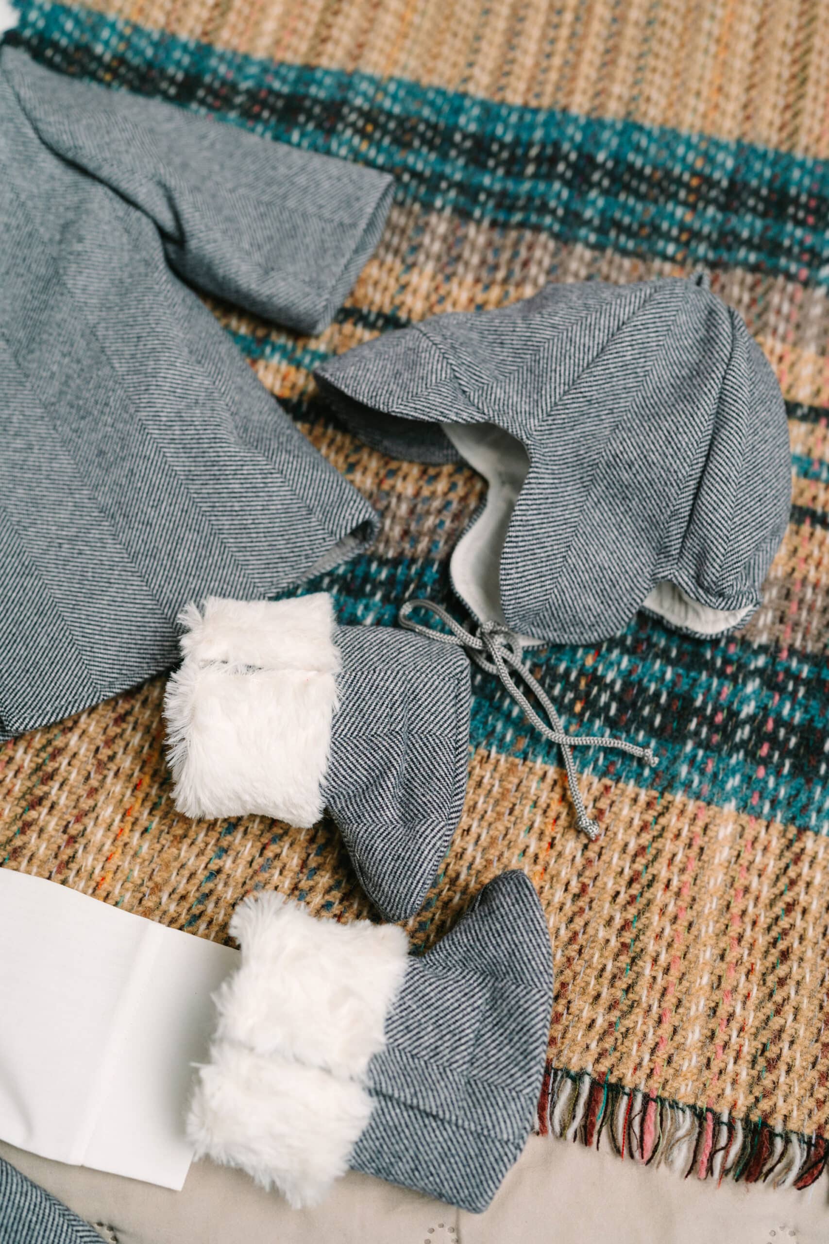 Setul este completat de cizmulițe cu blăniță și căciuliță asortate, pentru un look unitar și fermecător.