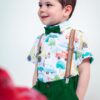 Costum botez cu cămașă creativă și bretele detașabile, 4 piese