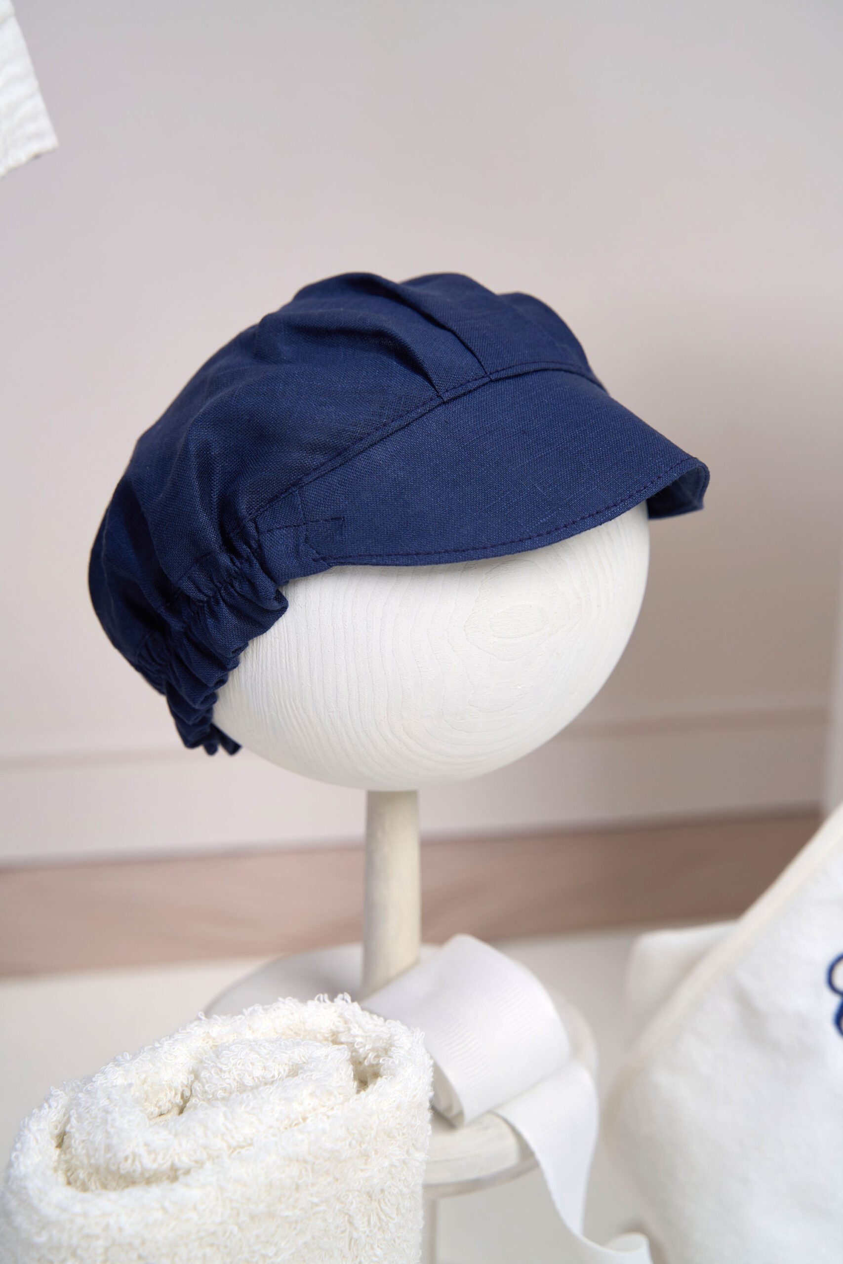 Șapca din in, cu elastic reglabil la spate, oferă o potrivire confortabilă, fiind un accesoriu practic și stilat.