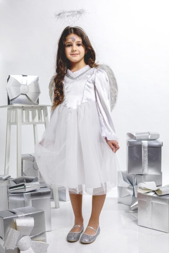 Creat special pentru Serbările de Iarnă – 3 piese (rochie, coroniță îngeraș, aripi îngeraș)
