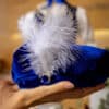 Pălăria – Pălăria este realizată din catifea și este decorată cu o pană albă, fină și broșă, completând perfect ținuta de botez.