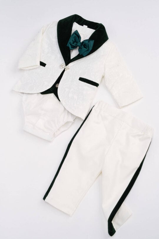 Costum botez Enzo – 5 piese – sacou, vestă, cămașă tip body, pantaloni, papion