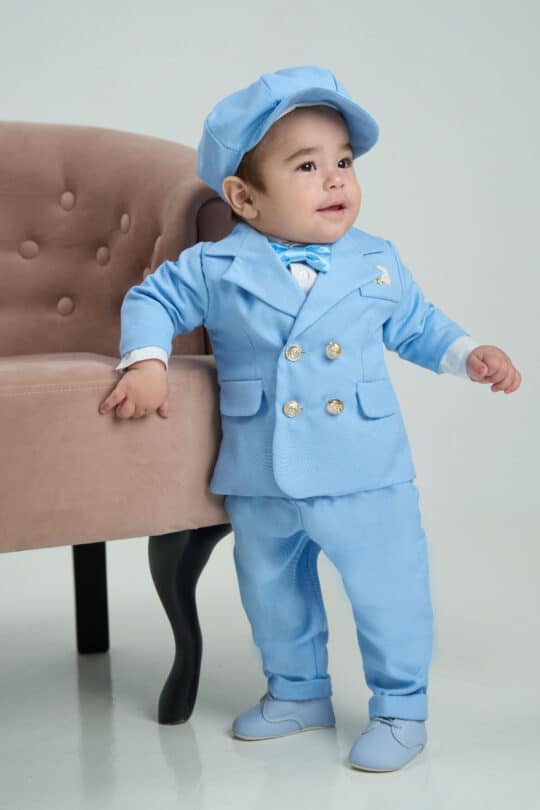 Costumul este elegant și se poartă la primul eveniment important din viața bebelușului, Botezul.