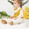 Descoperă noul nostru set pentru bebeluși de botez, în culori proaspete, verde și galben, special creat pentru a îmbrăca cu delicatețe și confort micuții în ziua lor speciala, cea a botezului.
