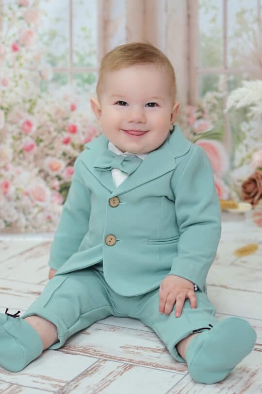 Costum botez băieți cu sacou, pantaloni și body, în verde sau mentă – 6piese