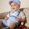 - 5 piese (până la vârsta de 9-12 luni): pantaloni cu bretele, sacou, cămașă, pălăriuță, papion