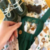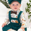 Țesătura din amestec de in și bumbac alături de nuanța de verde intens și cămașa cu imprimeu animăluțe va face bebelușul tău să se simtă ca regele junglei.