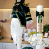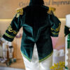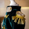Confecționat cu atenție meticuloasă la detalii, redingota prezintă detalii aurii, epoleți cu ciucuri aurii și un guler special cu o textura diferită, accentuată de nasturi rotunzi aurii.