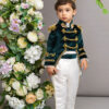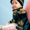 Pășește într-o lume a încântării alături de redingota din catifea verde a micului Nikolai!
