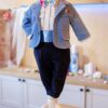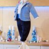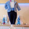 Costum botez cu sacou slim-fit din catifea – 5 piese
