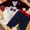 Costum botez cu sacou slim-fit din catifea – 5 piese
