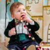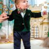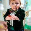 Costum botez cu sacou slim-fit din catifea – 5 piese
