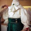 Costumul de botez conține 5 piese: pantaloni, redingotă, cămașă, jabou, pălăriuță.