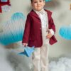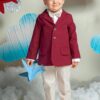 Costum botez cu sacou slim-fit din catifea – 5 piese