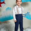 Costum botez băieți cu bretele și papion – 5 piese