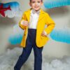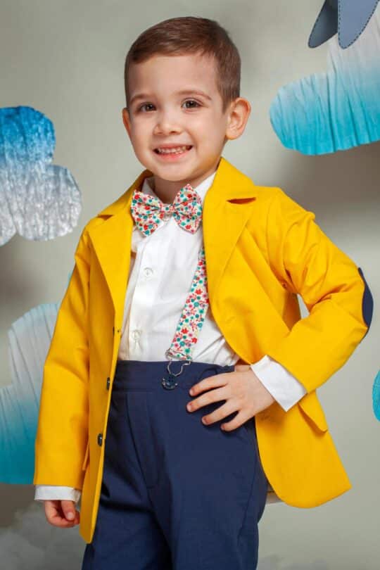 Costumul este cambrat, croit pentru silueta copiilor. O alegere sigură cu care nu veți da greș!