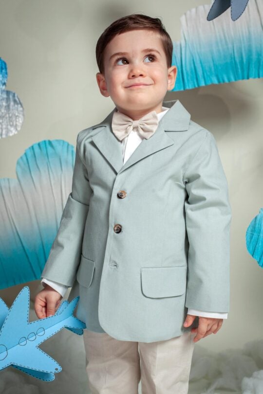 Costumul este cambrat, croit pentru silueta copiilor. O alegere sigură cu care nu veți da greș!