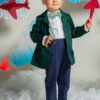Costum botez cu sacou slim-fit din catifea – 5 piese