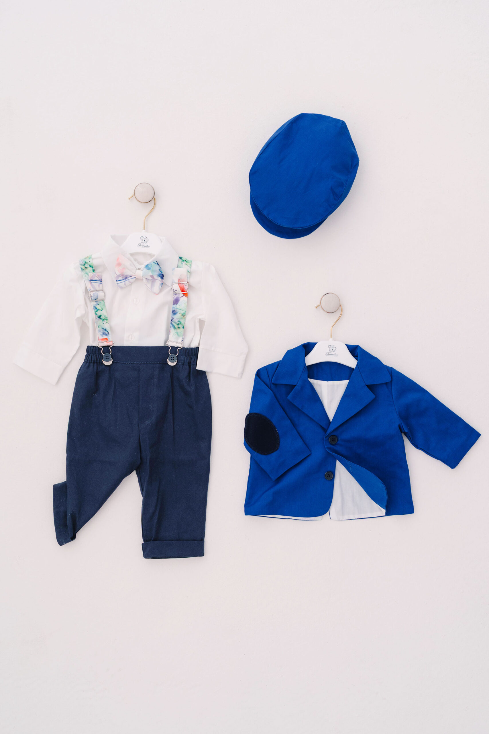 Costum botez băieți cu bretele și papion – 5 piese