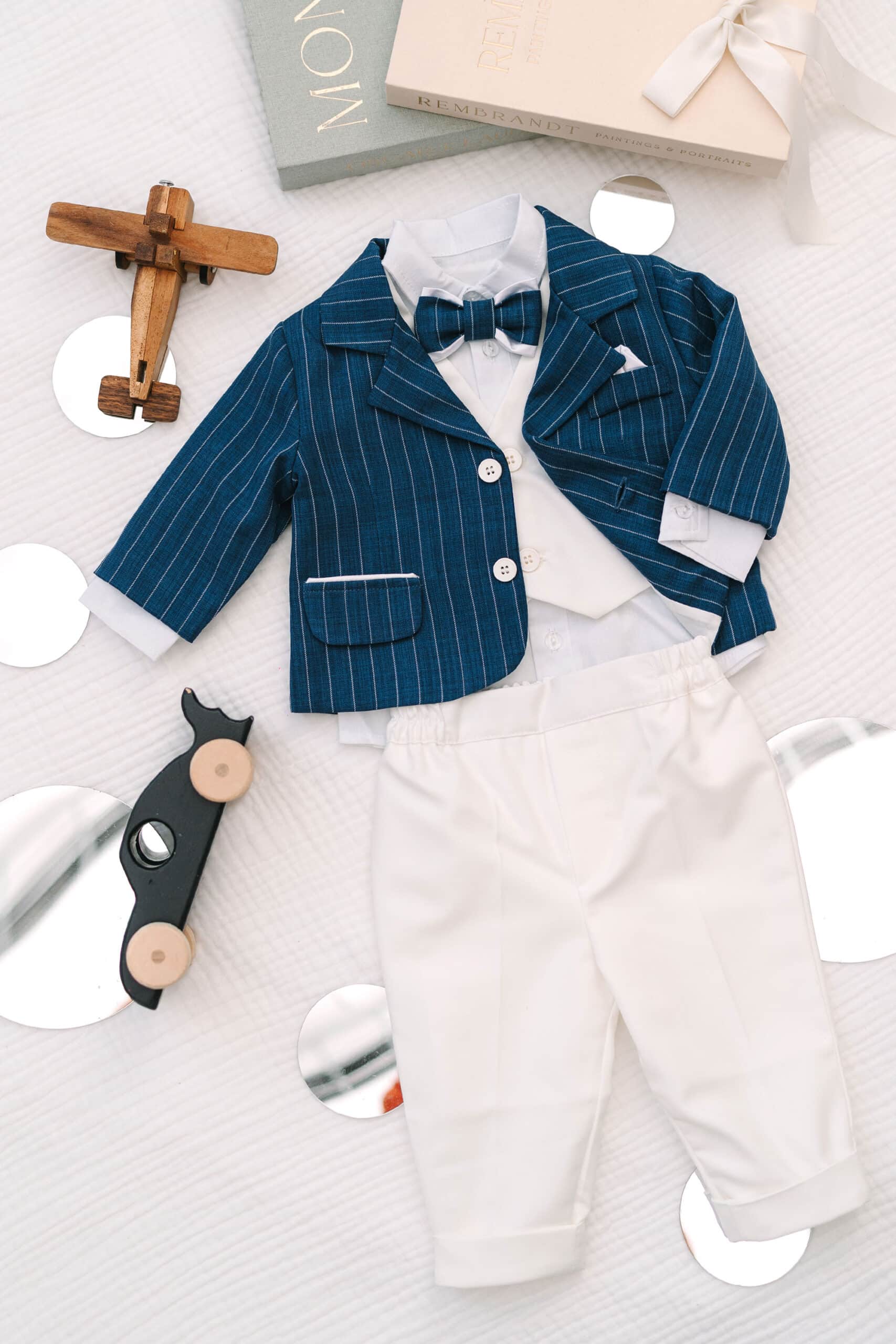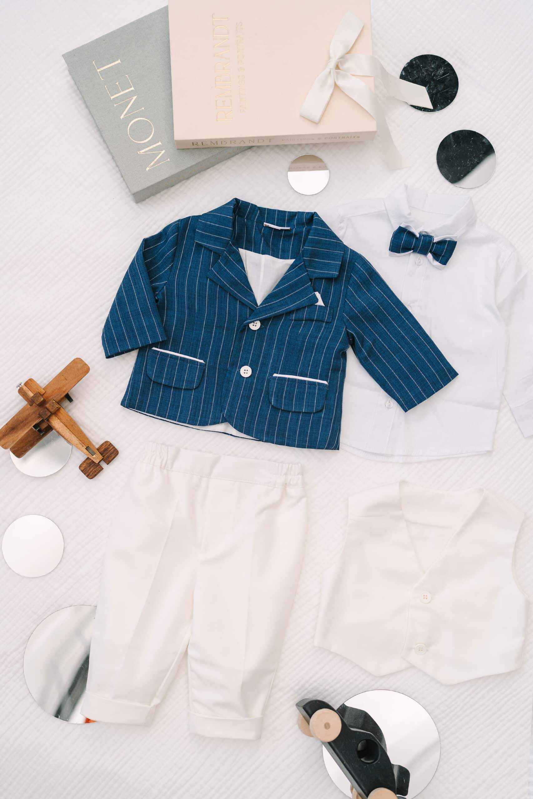 Costum botez cu sacou slim-fit și vestă – 5 piese