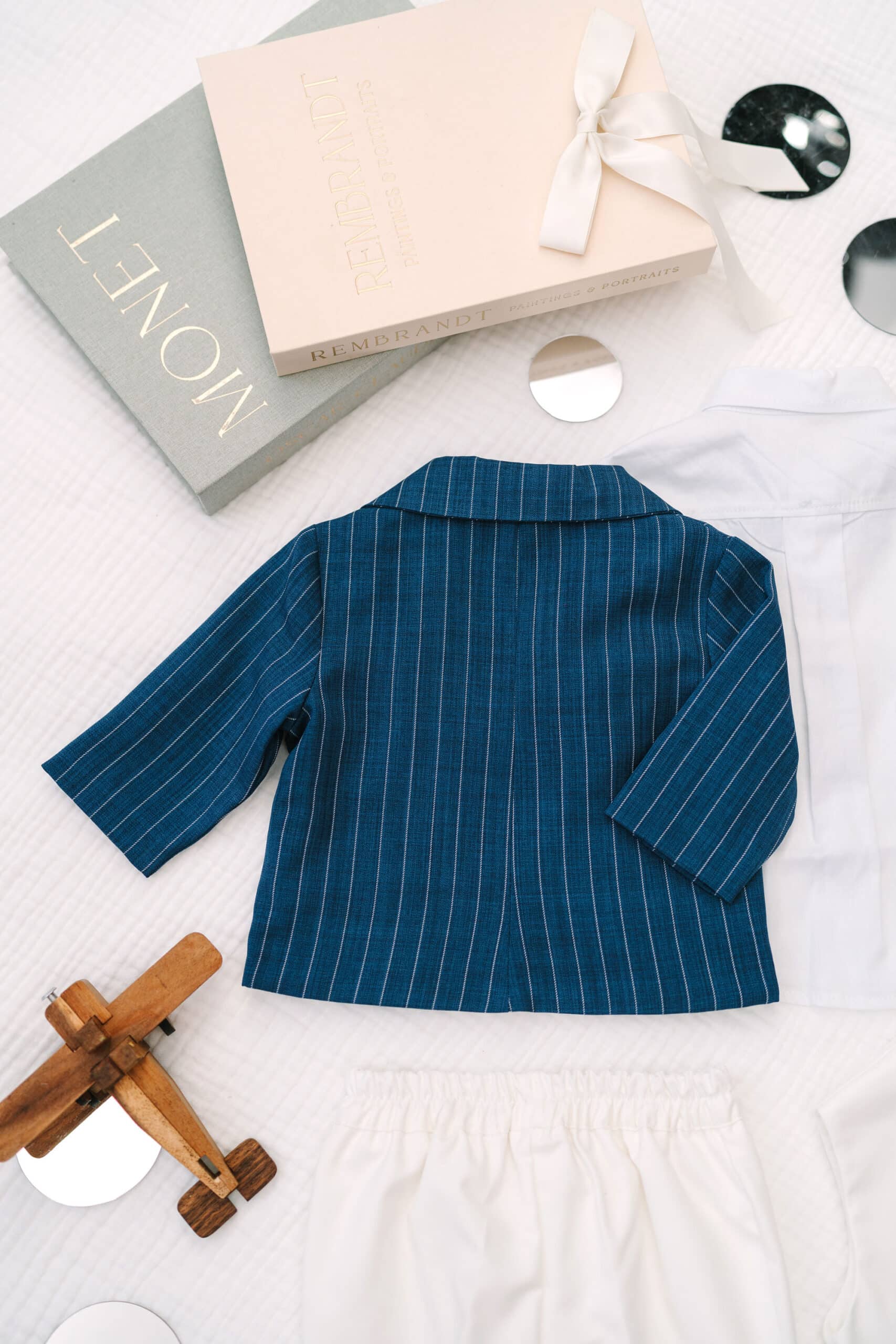 - sacou bleumarin cu dungi fine alb-ivoire,