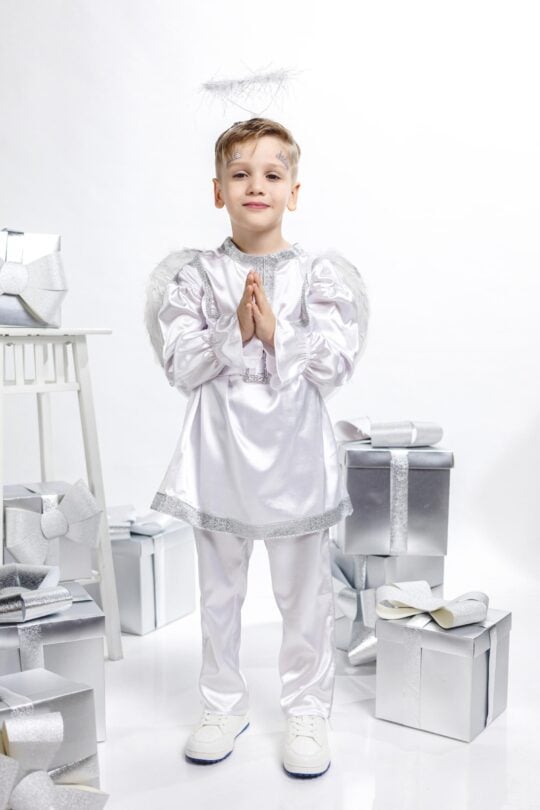 Costum de Serbare Îngeraș pentru băieței – alb argintiu