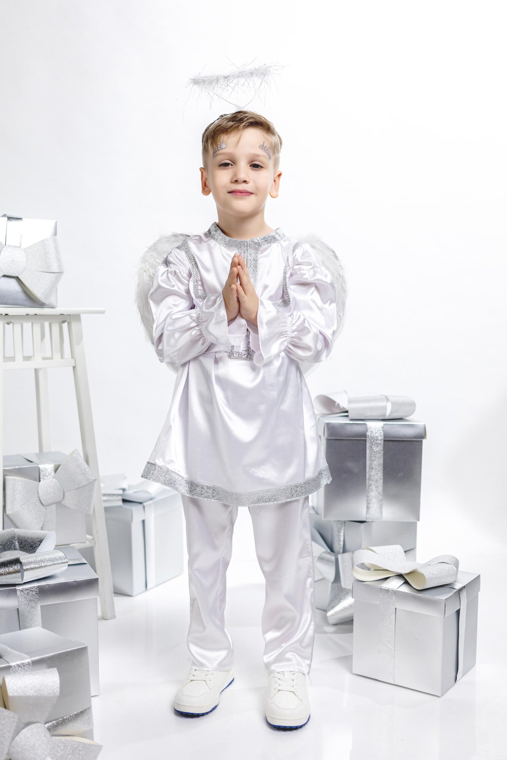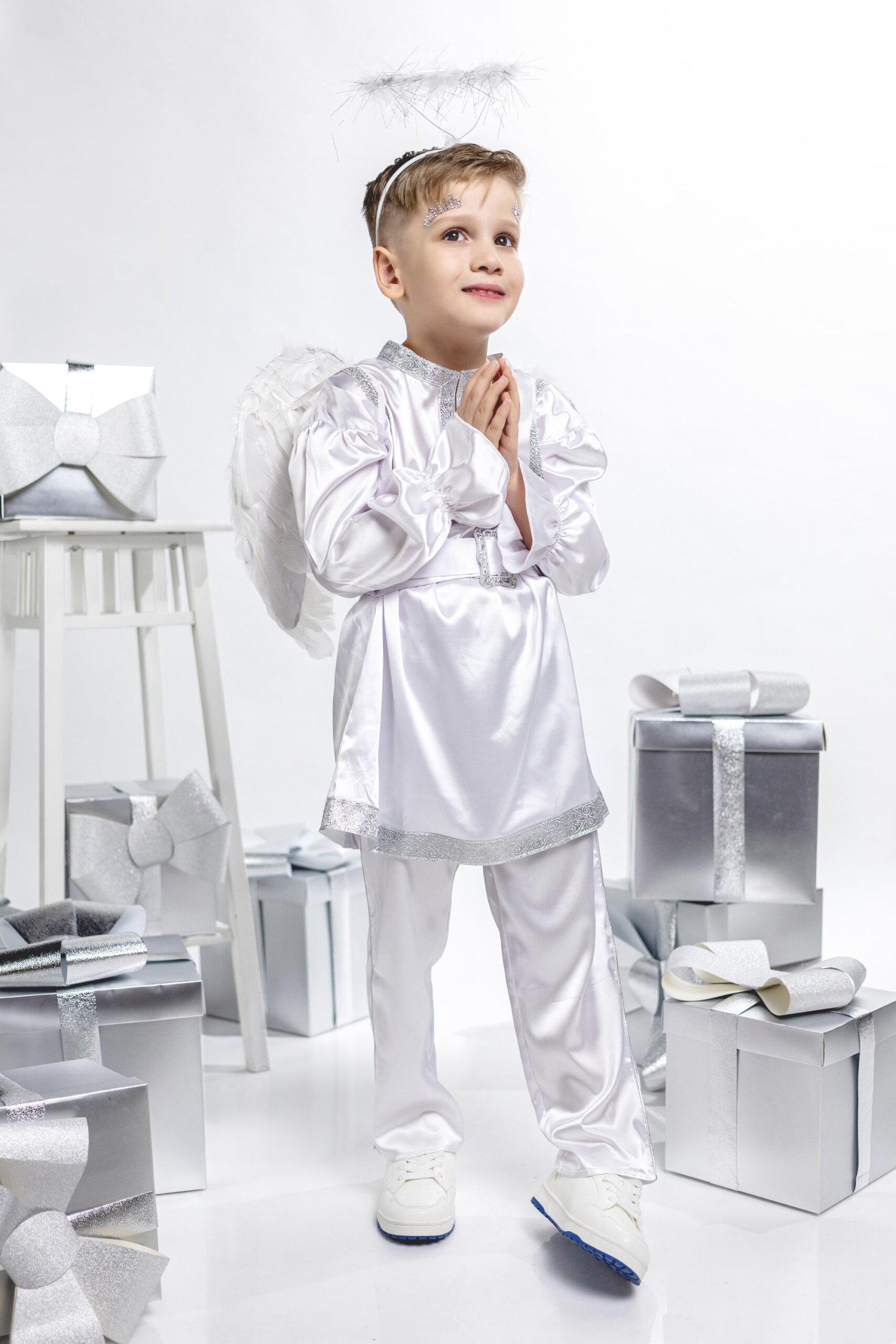 Creat special pentru Serbările de Iarnă – 4 piese (pantaloni, cămașă cu brâu, coroniță îngeraș, aripi îngeraș)
