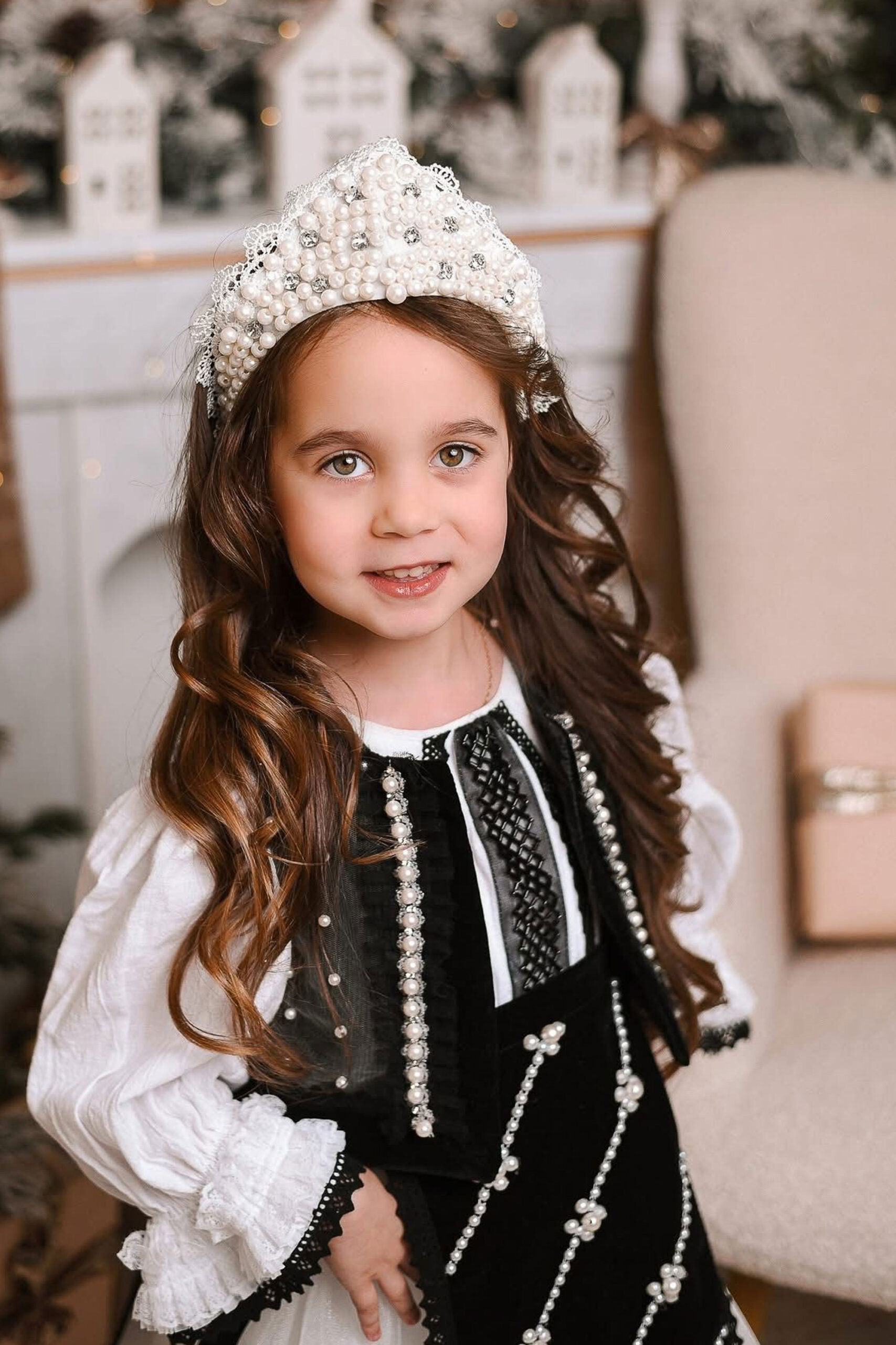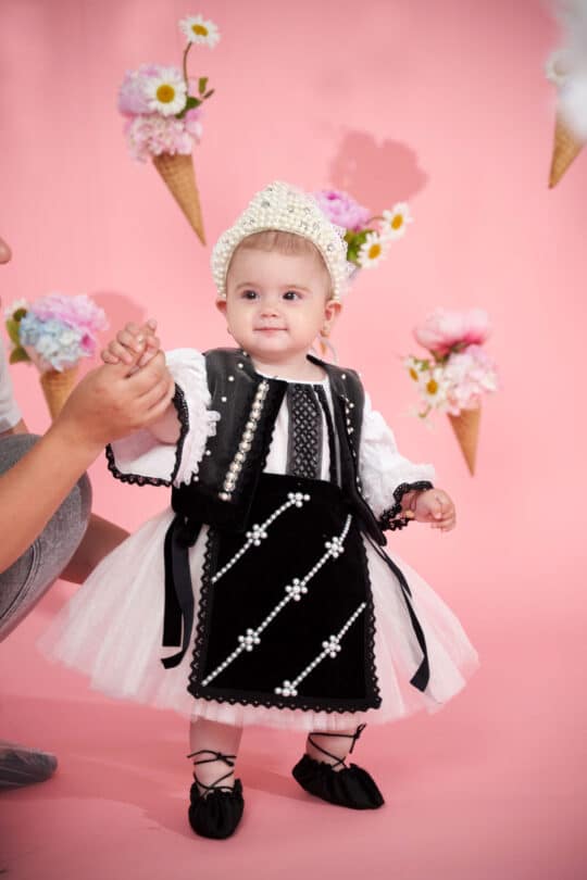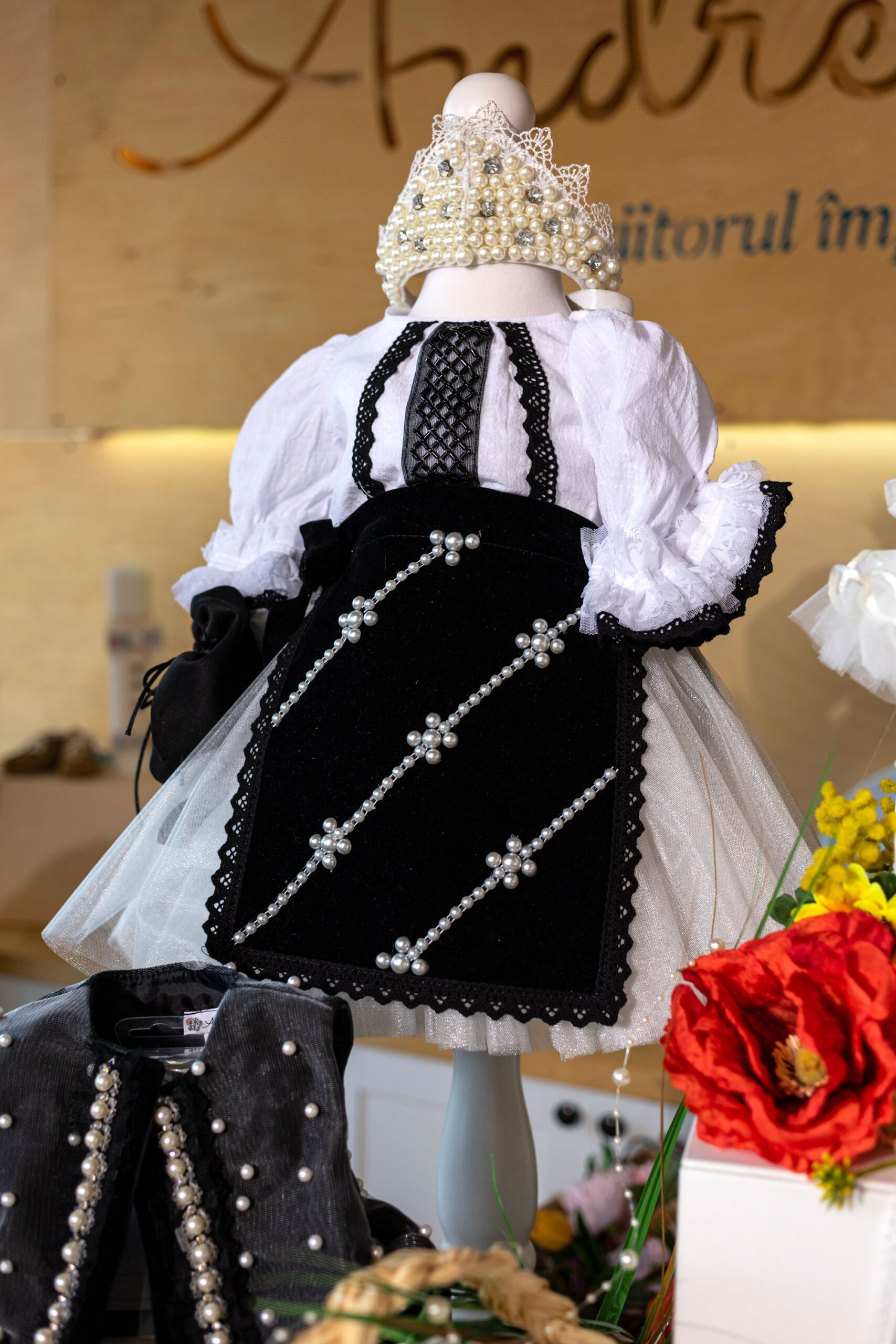 Îmbinând tradiția cu eleganța, fiecare element al acestei ținute este creat cu dedicare și pasiune și reflectă frumusețea designului de modă pentru copii.