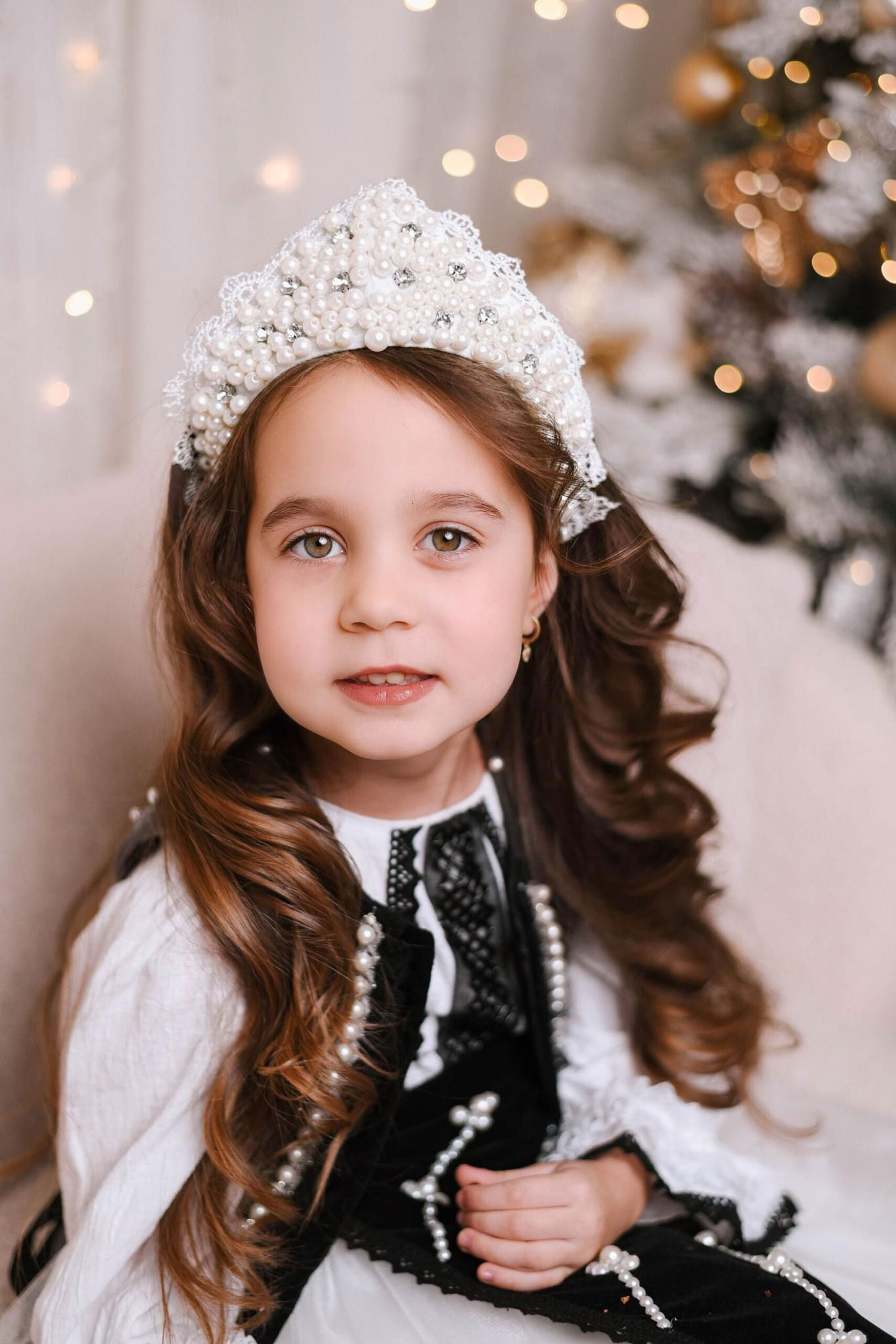 Poți adăuga produsului un accesoriu pe cap deosebit, o coroană realizată din perle care îi conferă ținutei un aer regal, completând perfect look-ul tradițional.