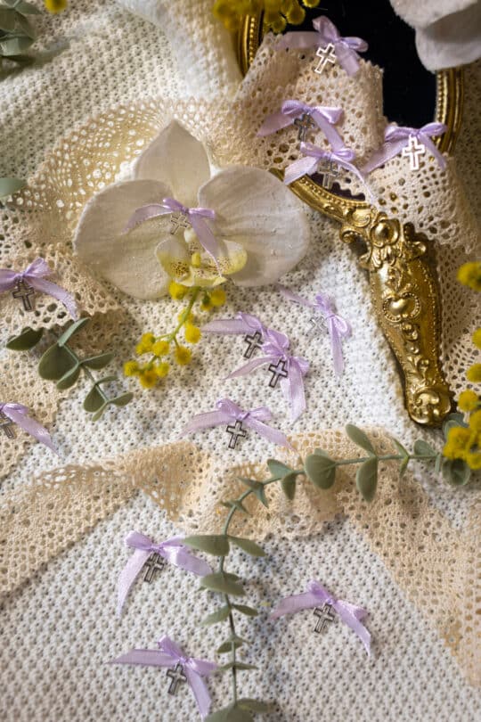 Cruciulițe cu fundiță colorată din satin (set 20 buc)
