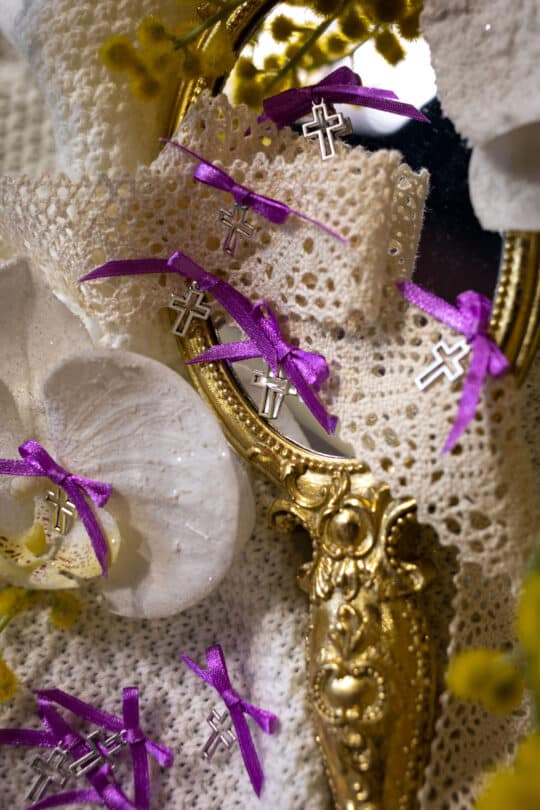 Cruciulițele se poartă în ziua botezului la biserică, se pun invitaților ce participă la slujbă.