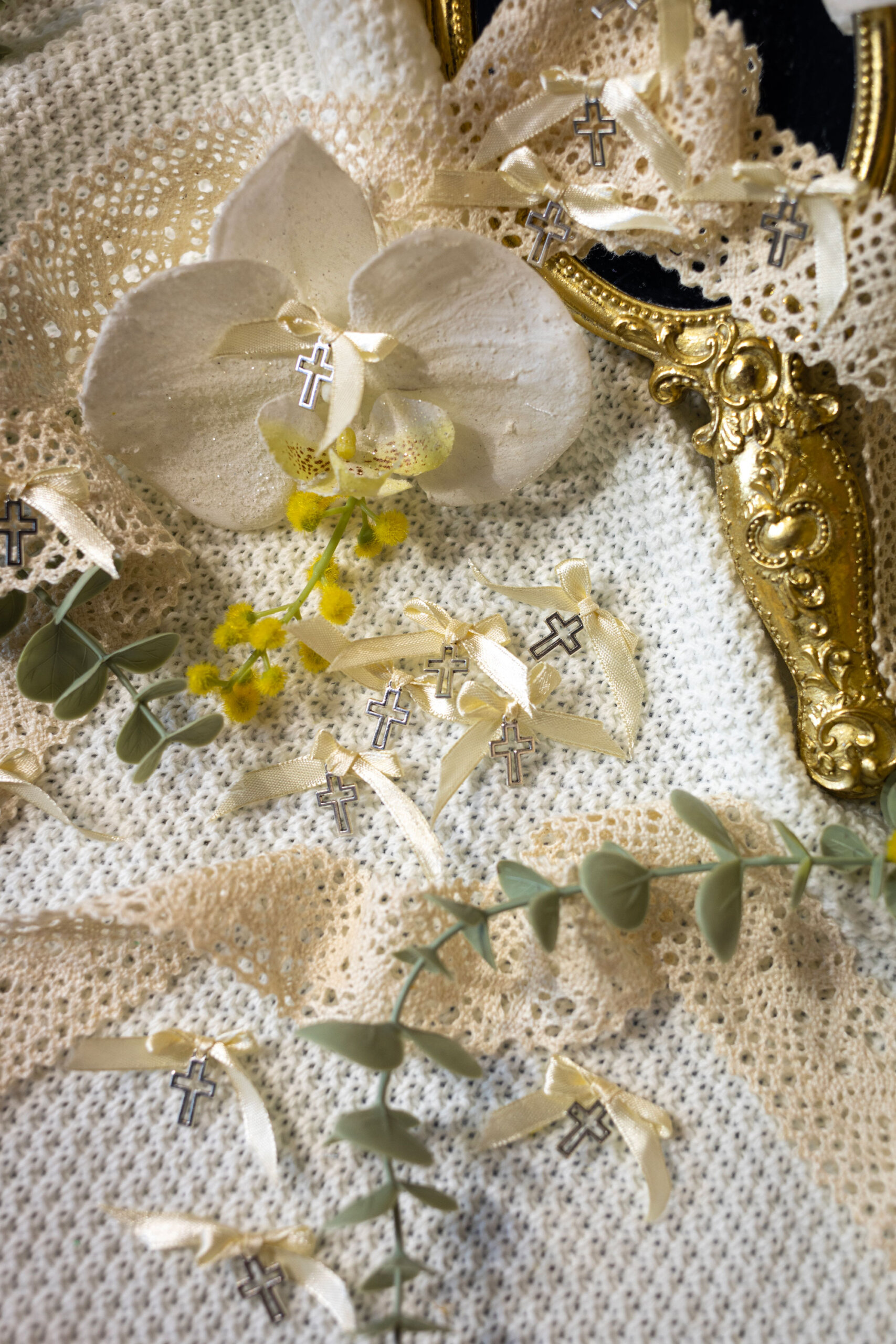 Cruciulițe cu fundiță colorată din satin (set 20 buc)