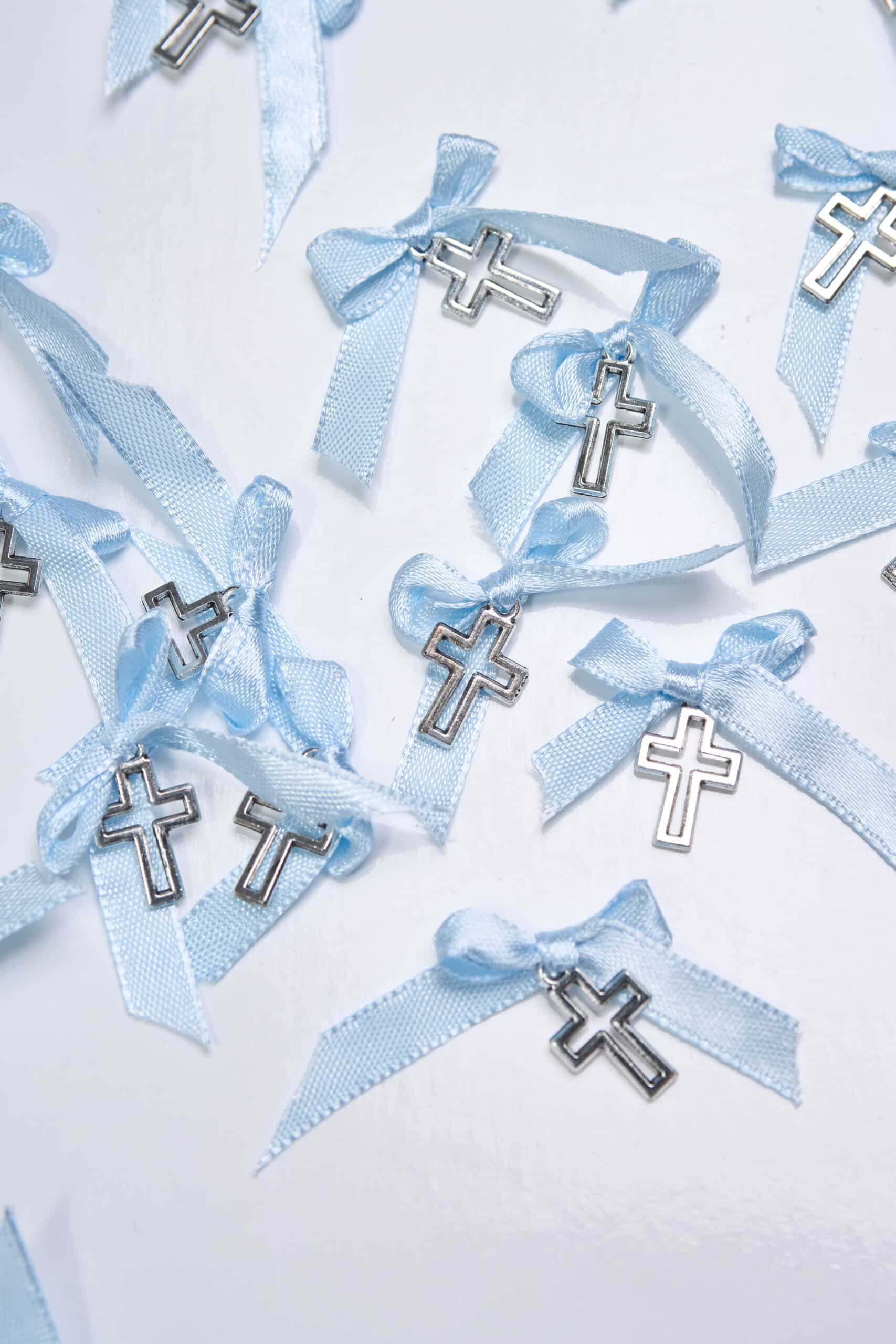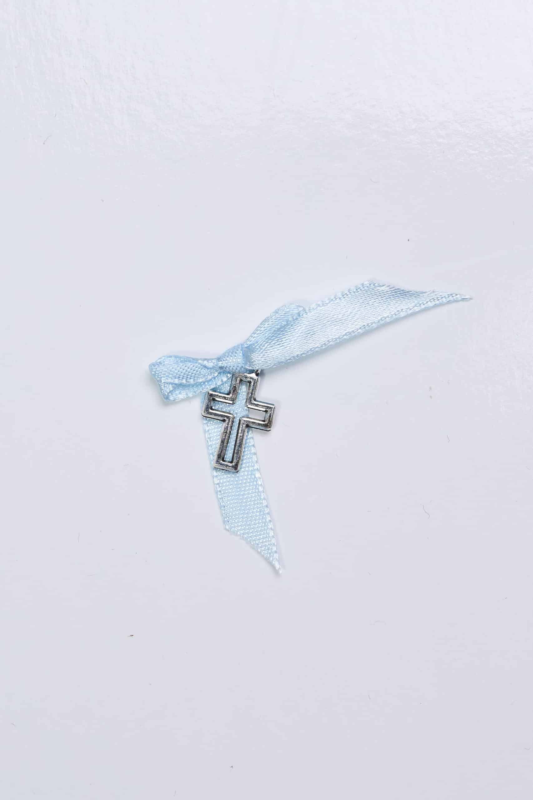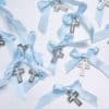 Cruciulițe botez cu fundiță colorată din satin, bleu