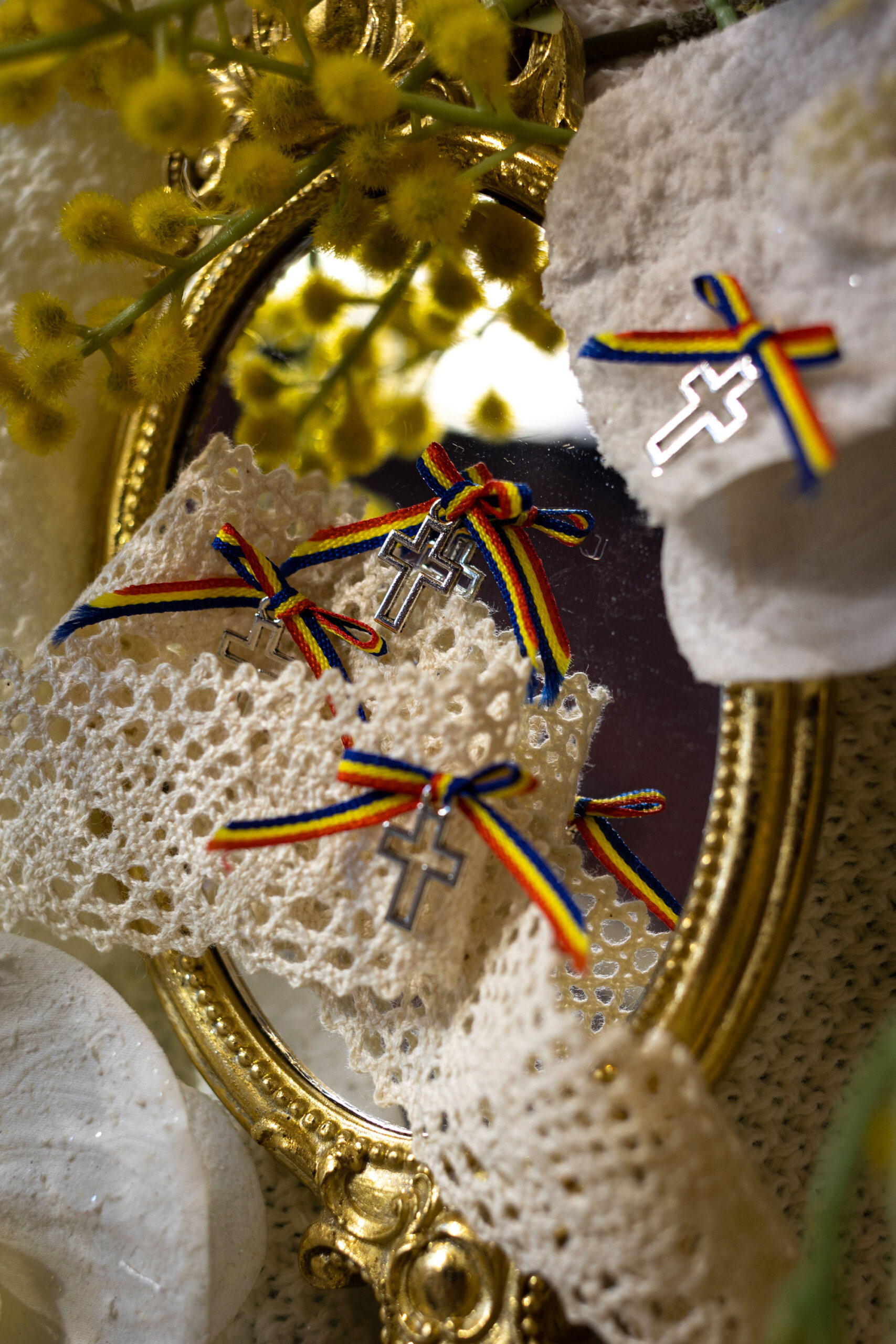 Cruciulițele se poartă în ziua botezului la biserică, se pun invitaților ce participă la slujbă.