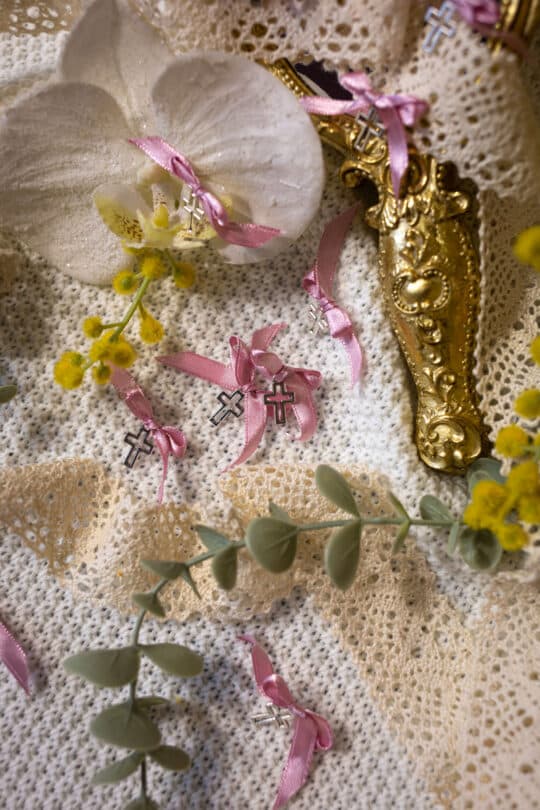 Cruciulițe cu fundiță colorată din satin (set 20 buc)